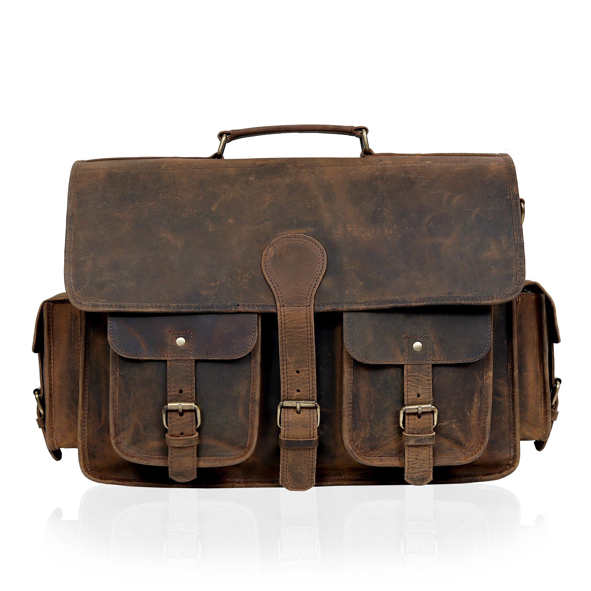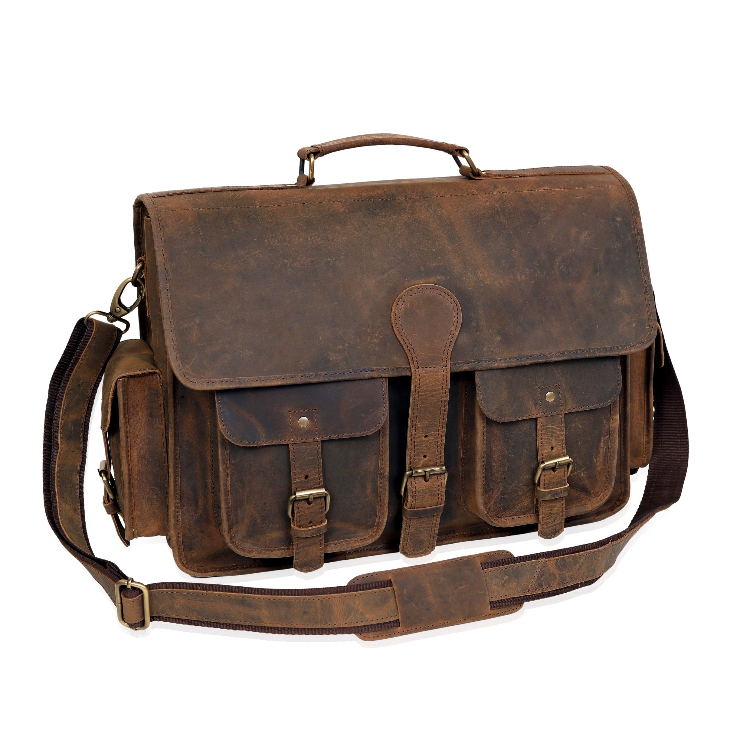 Designed with functionality in mind, The Granger offers a roomy main compartment, a padded laptop section, and multiple utility pockets to keep your essentials neatly organized. The classic flap-over closure with antique-finish hardware ensures security while adding a refined vintage touch. An adjustable leather strap provides all-day comfort, making it perfect for daily commutes, business meetings, or travel.
