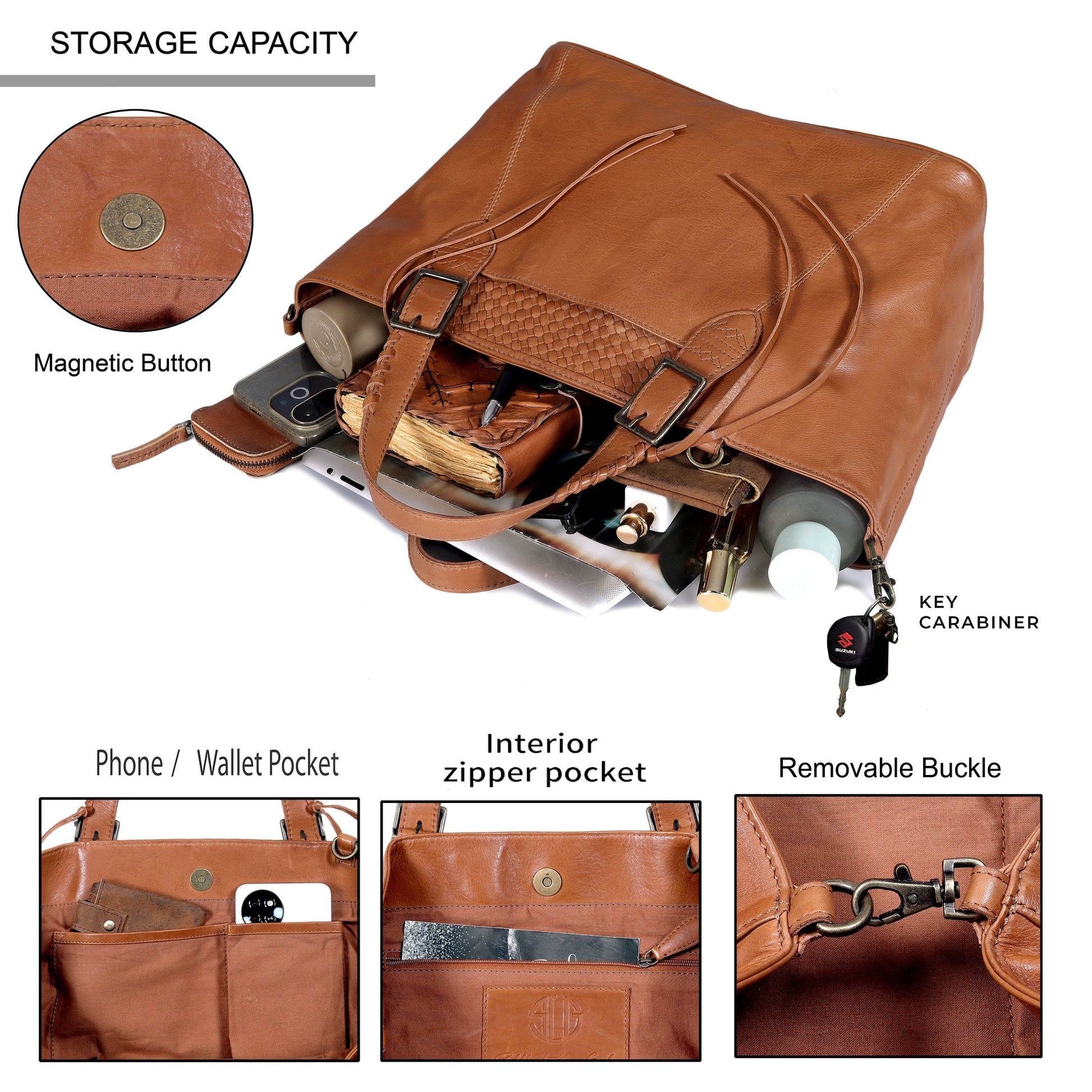 Crafted from premium full-grain buffalo leather, The Sunrise Leather Tote embodies timeless elegance and everyday functionality. Its rich texture and natural sheen give it a warm, classic character that grows more beautiful with age. Designed with a spacious interior, it easily accommodates your daily essentials—whether it’s a laptop, books, or personal items—making it the perfect companion for work, travel, or casual outings. Sturdy leather handles ensure comfortable carrying, while the structured silhouette adds a touch of sophistication to any look. Durable, versatile, and effortlessly stylish, The Sunrise Leather Tote is built to be your go-to bag for years to come.