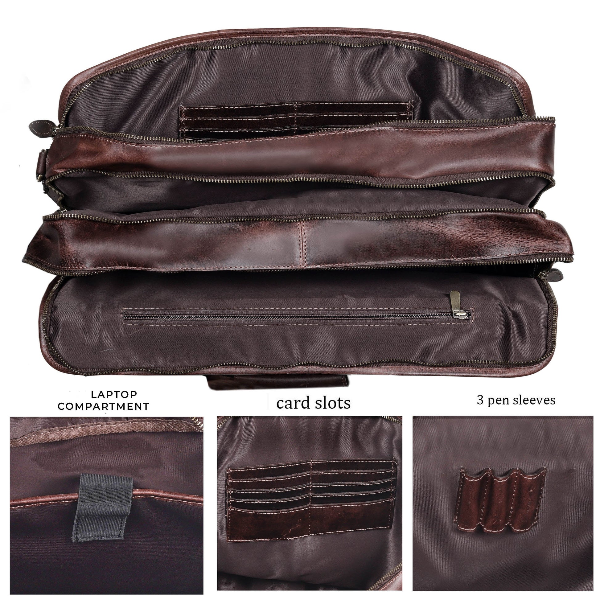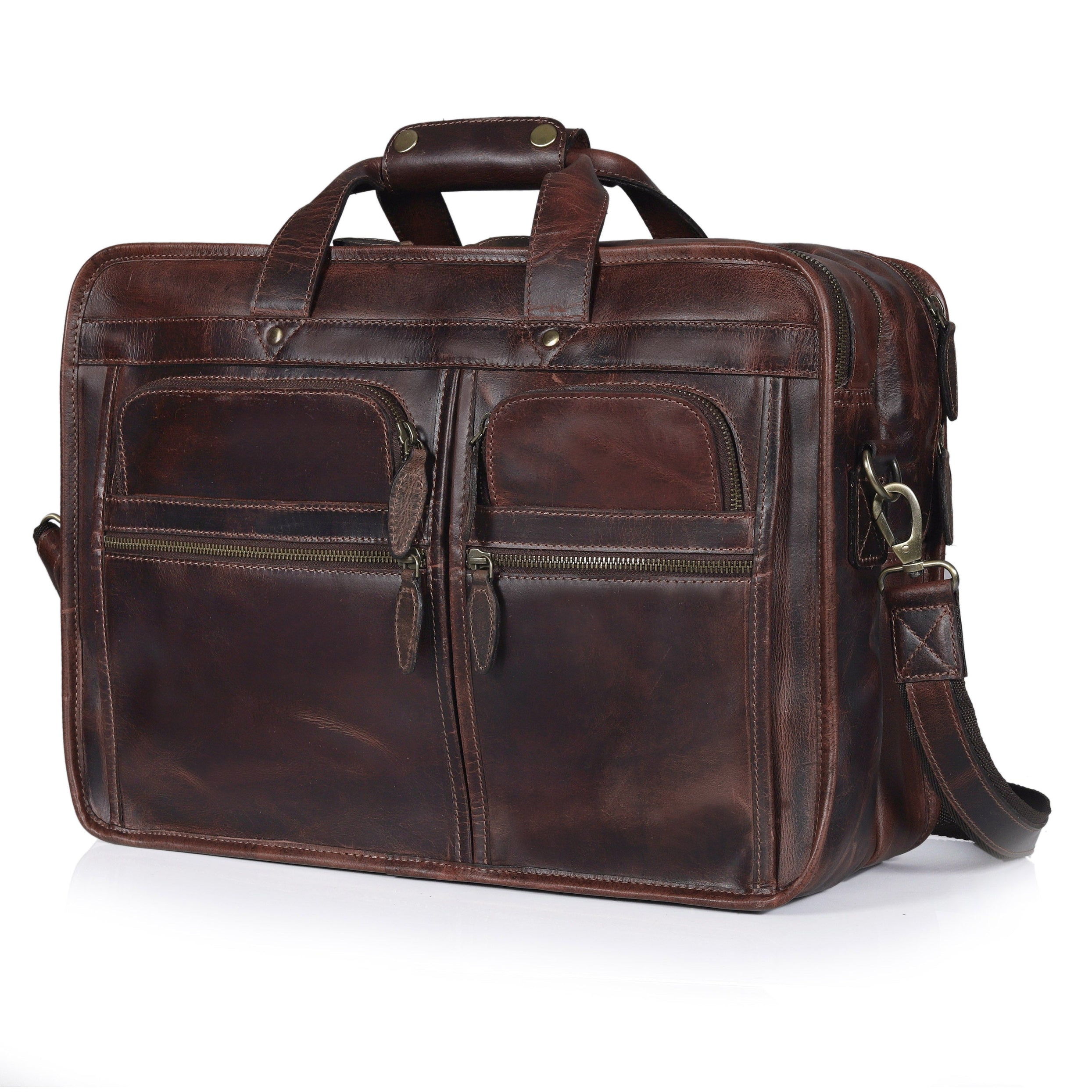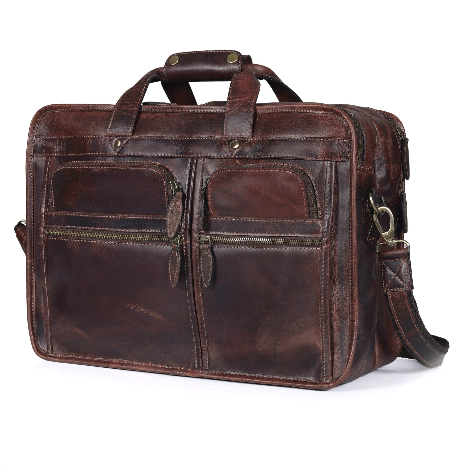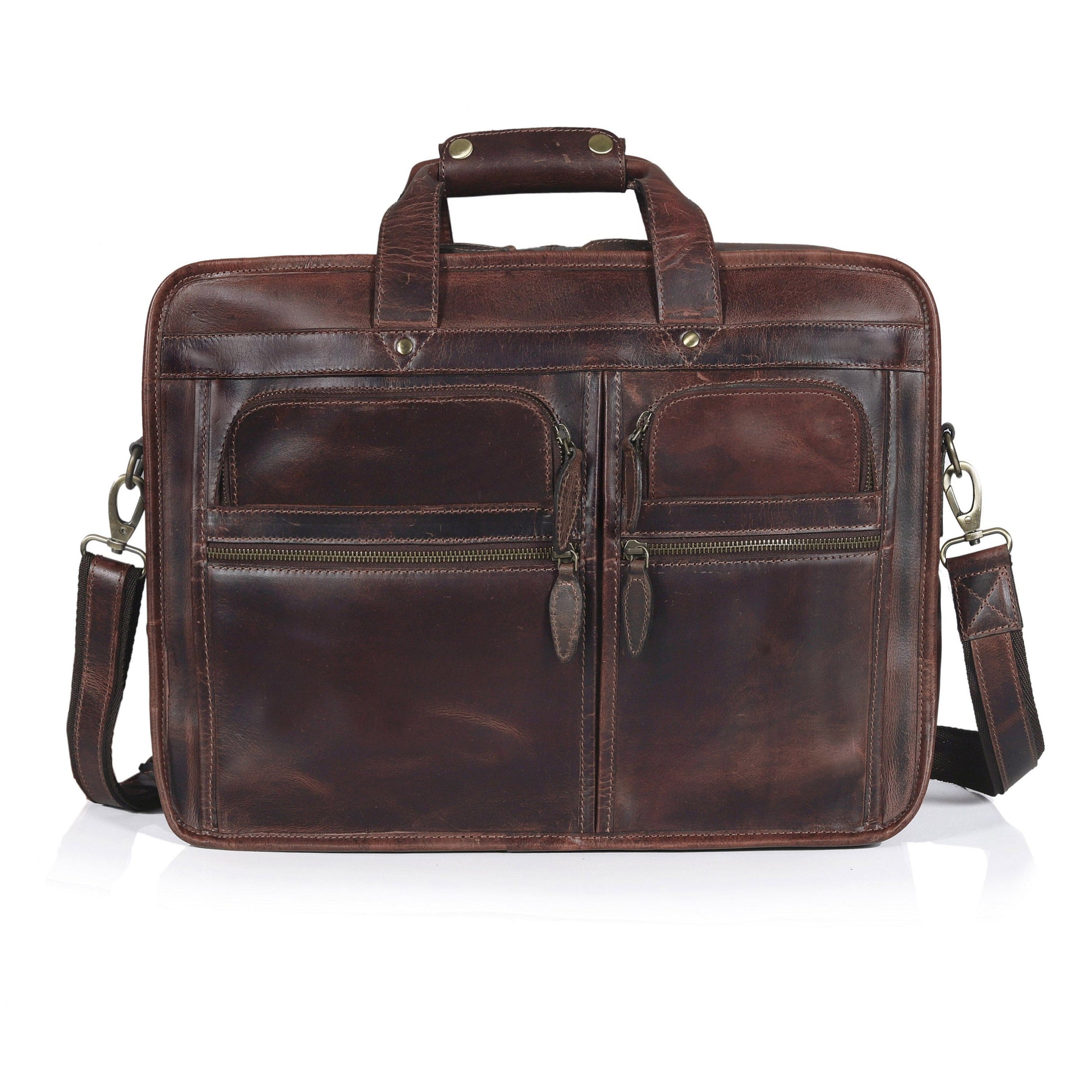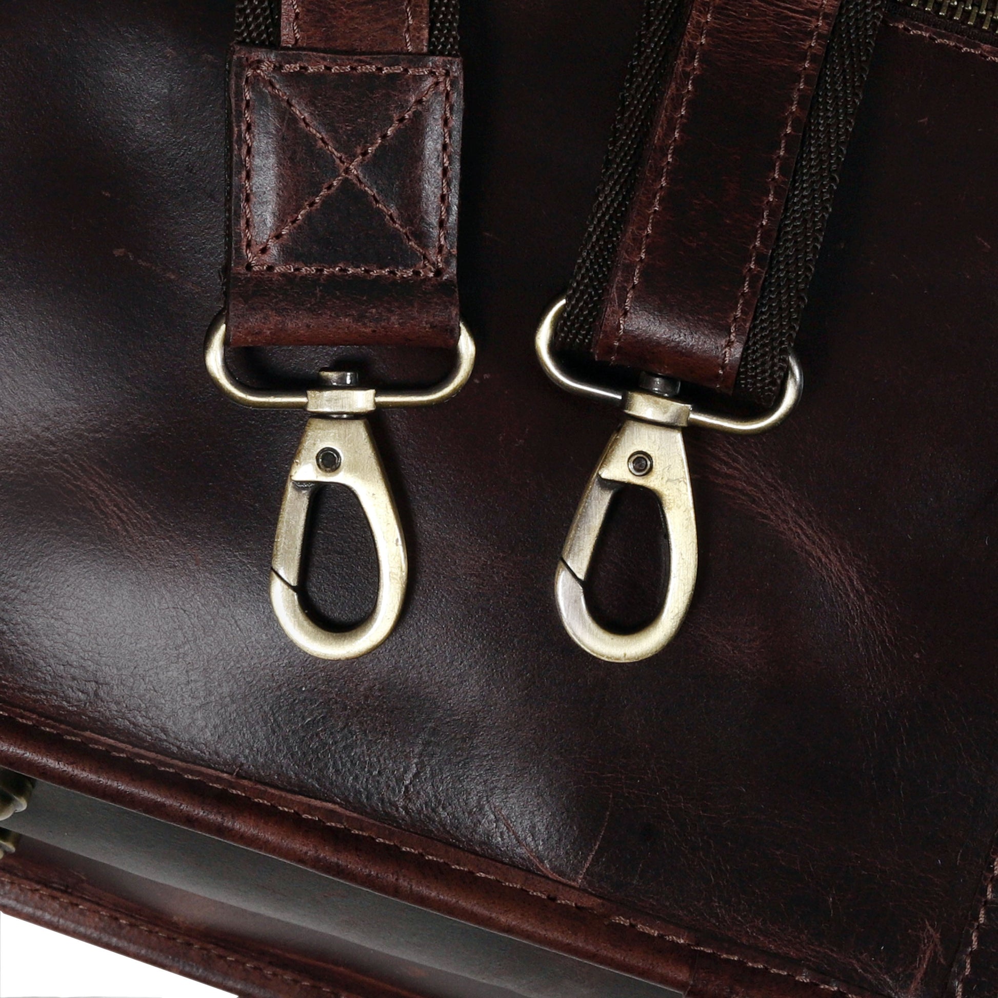 With its reinforced leather handles and an adjustable, padded shoulder strap, this briefcase provides comfort on the go without compromising on style. The brass hardware accents add a vintage charm, making it the perfect blend of elegance and practicality.