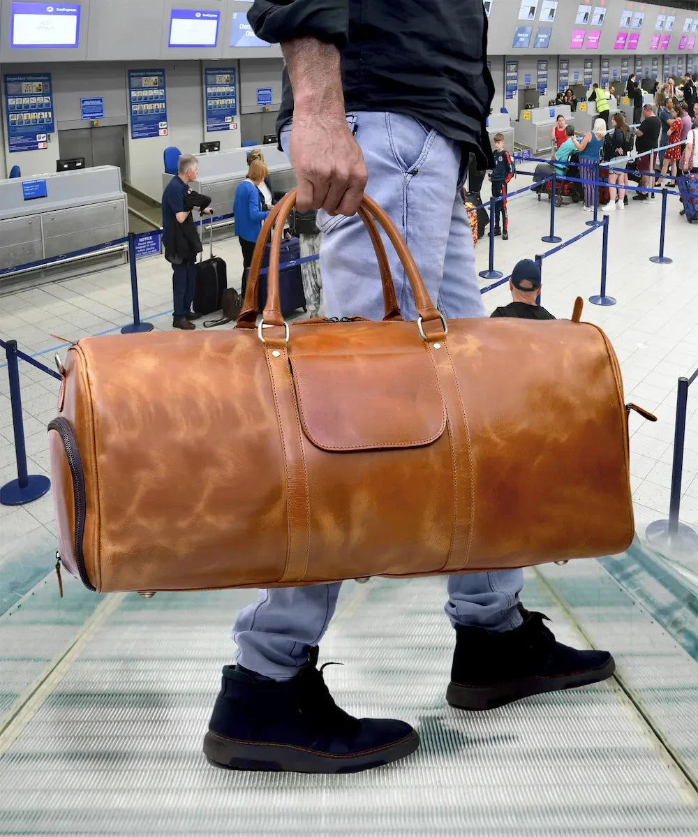 The Classic Weekender Duffle Bag is the perfect travel companion for those who appreciate style, durability, and practicality. Crafted from premium full-grain leather, this bag is designed to age beautifully, developing a rich patina over time. Whether you're heading out for a weekend getaway, a business trip, or a gym session, this duffle bag offers ample space and an effortlessly sophisticated look. The Duffle Bag is more than just a travel bag—it’s an investment in quality and elegance. Whether you're heading to a luxury resort or a rustic retreat, this duffle bag ensures you travel with confidence, sophistication, and convenience.