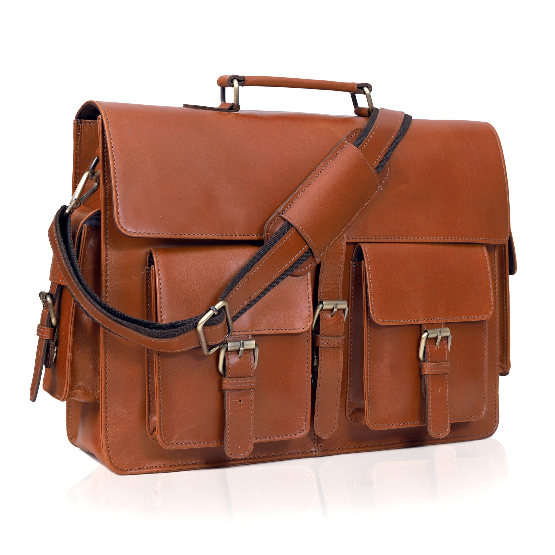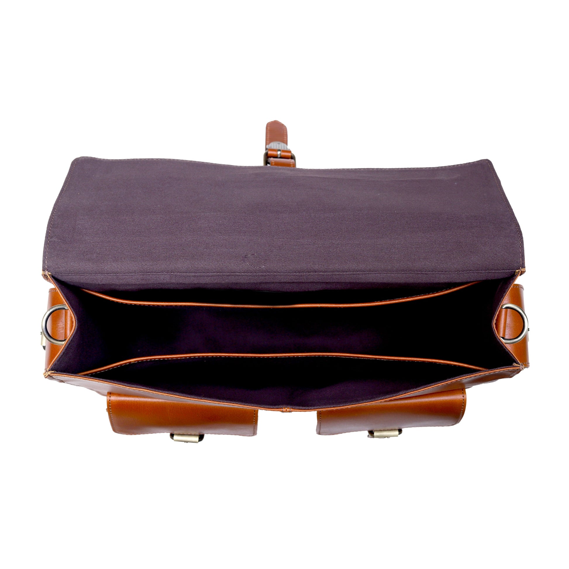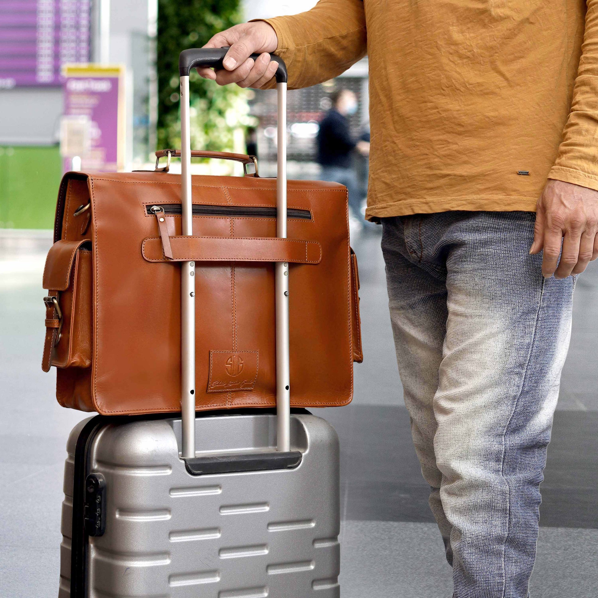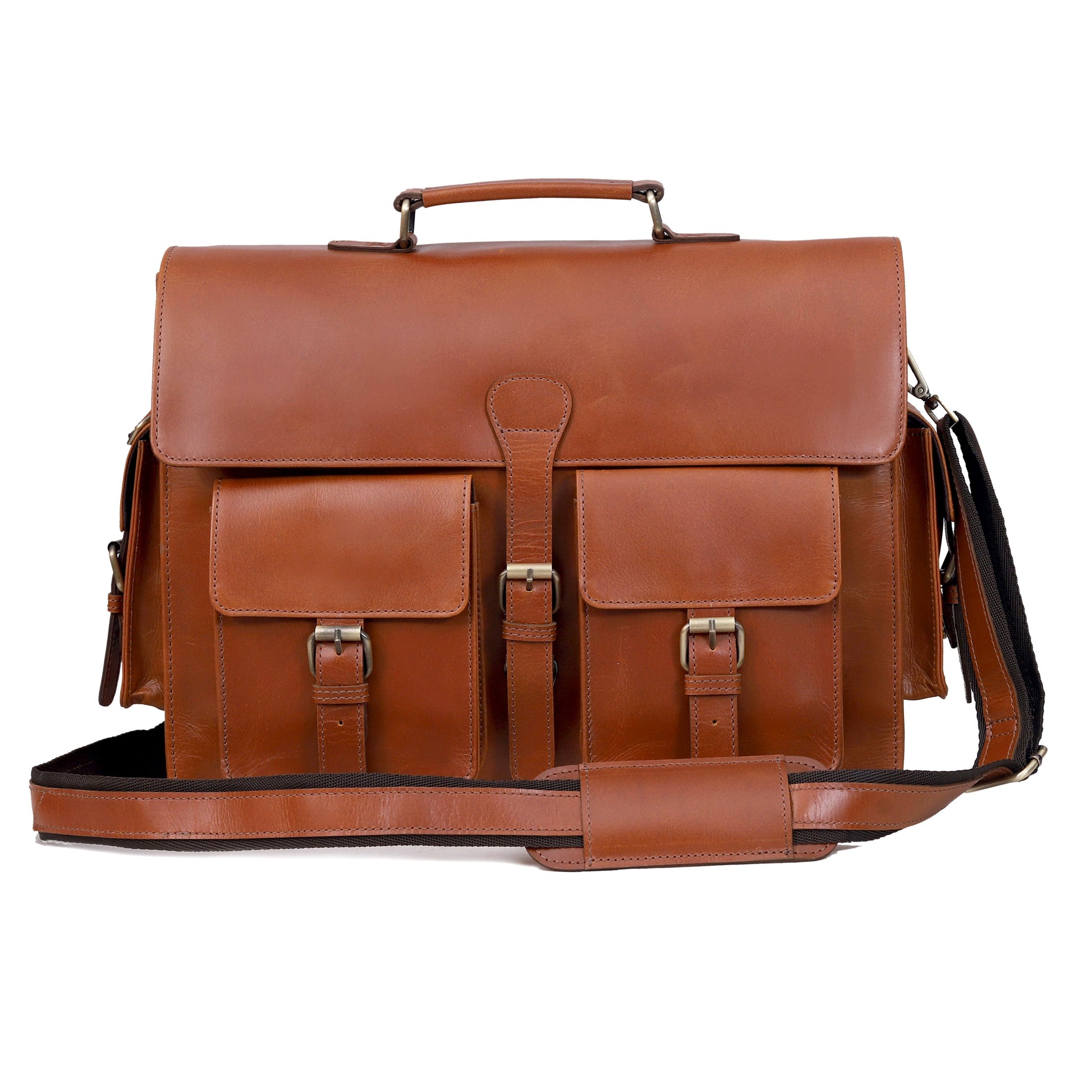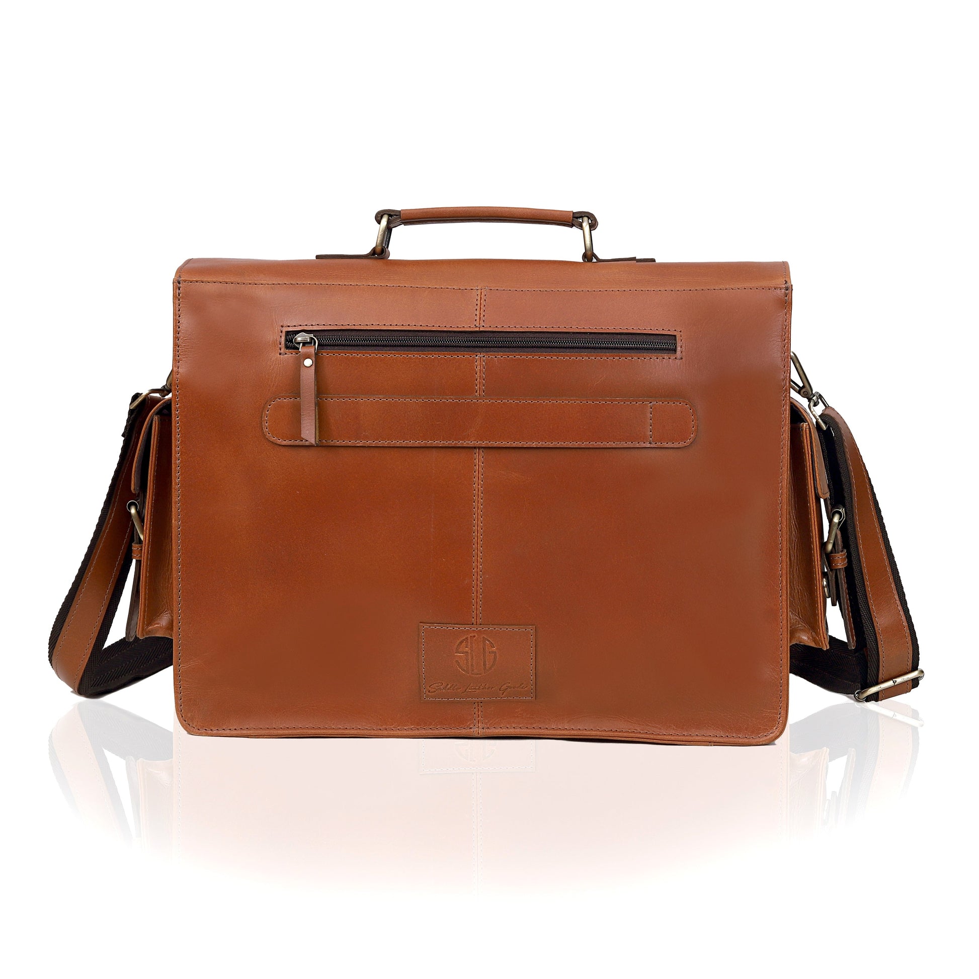 Featuring a spacious main compartment with dedicated sections for your laptop, documents, and essentials, it ensures you're organized whether you're heading to the office or traveling for business. Multiple inner pockets, a secure zipper closure, and vintage-style brass hardware add to both its practicality and aesthetic appeal.