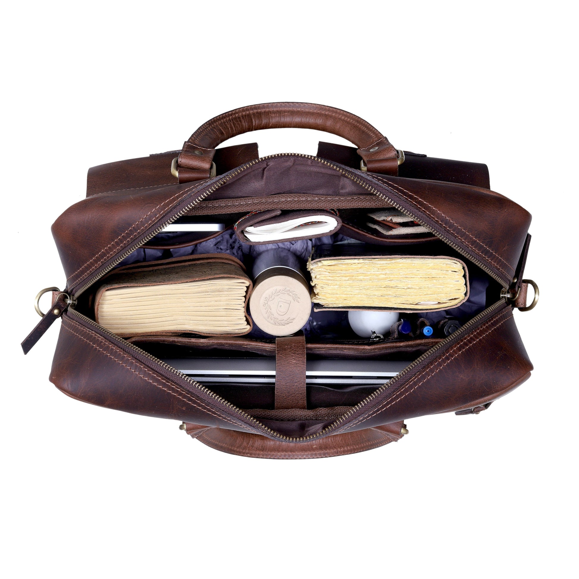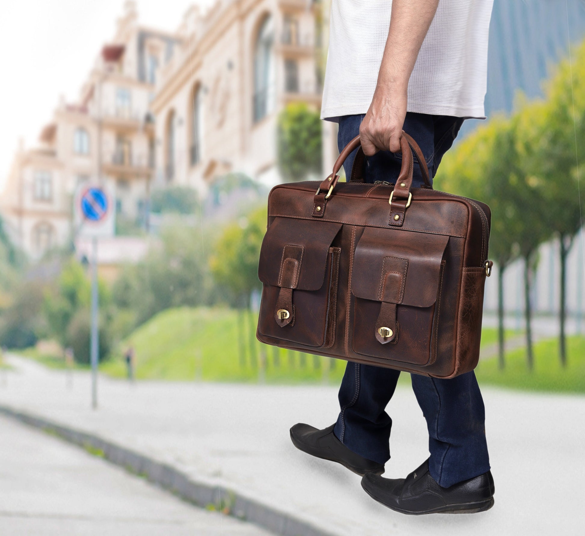 This buffalo leather briefcase is perfect for professionals, business travelers, and anyone looking for a stylish, long-lasting, and functional work bag.