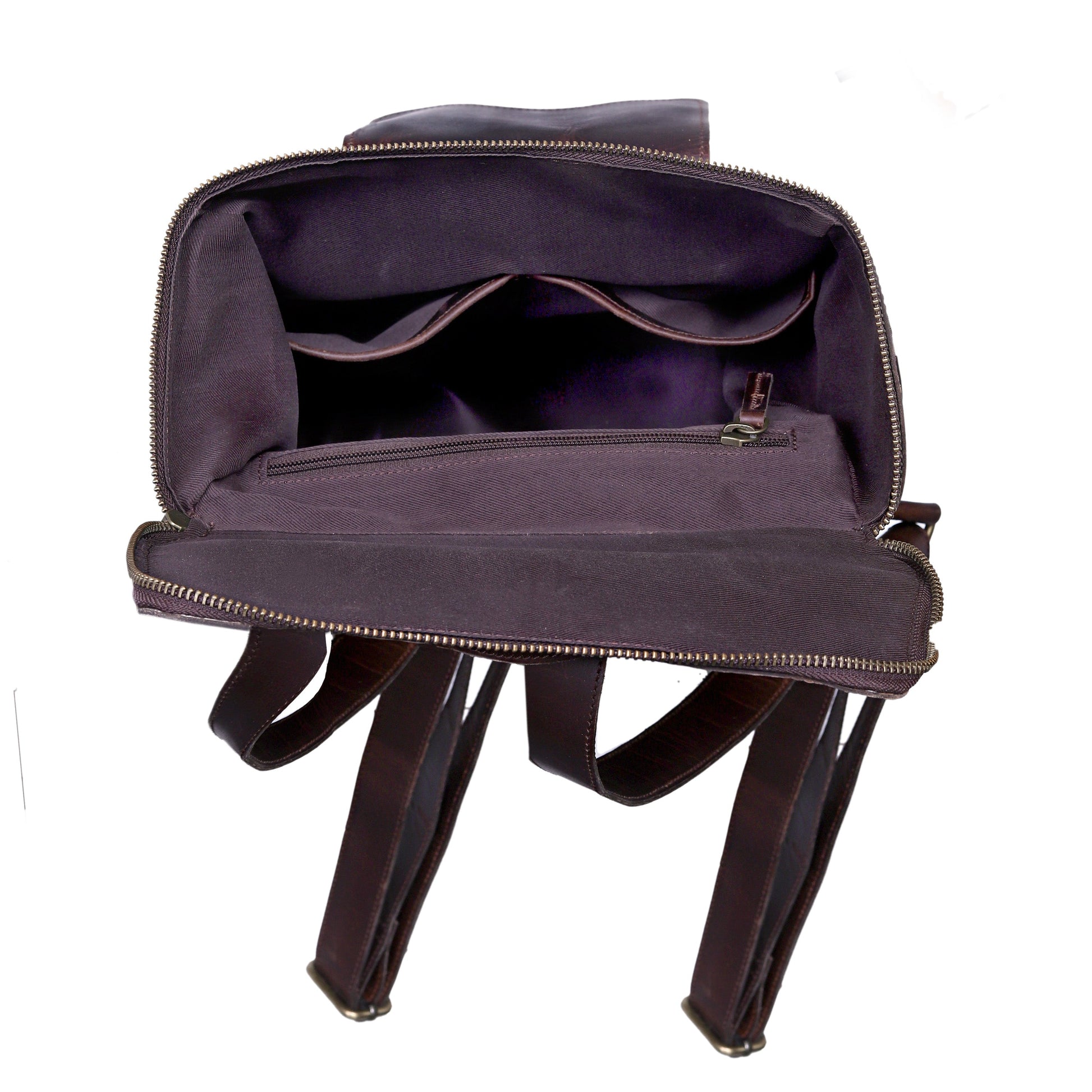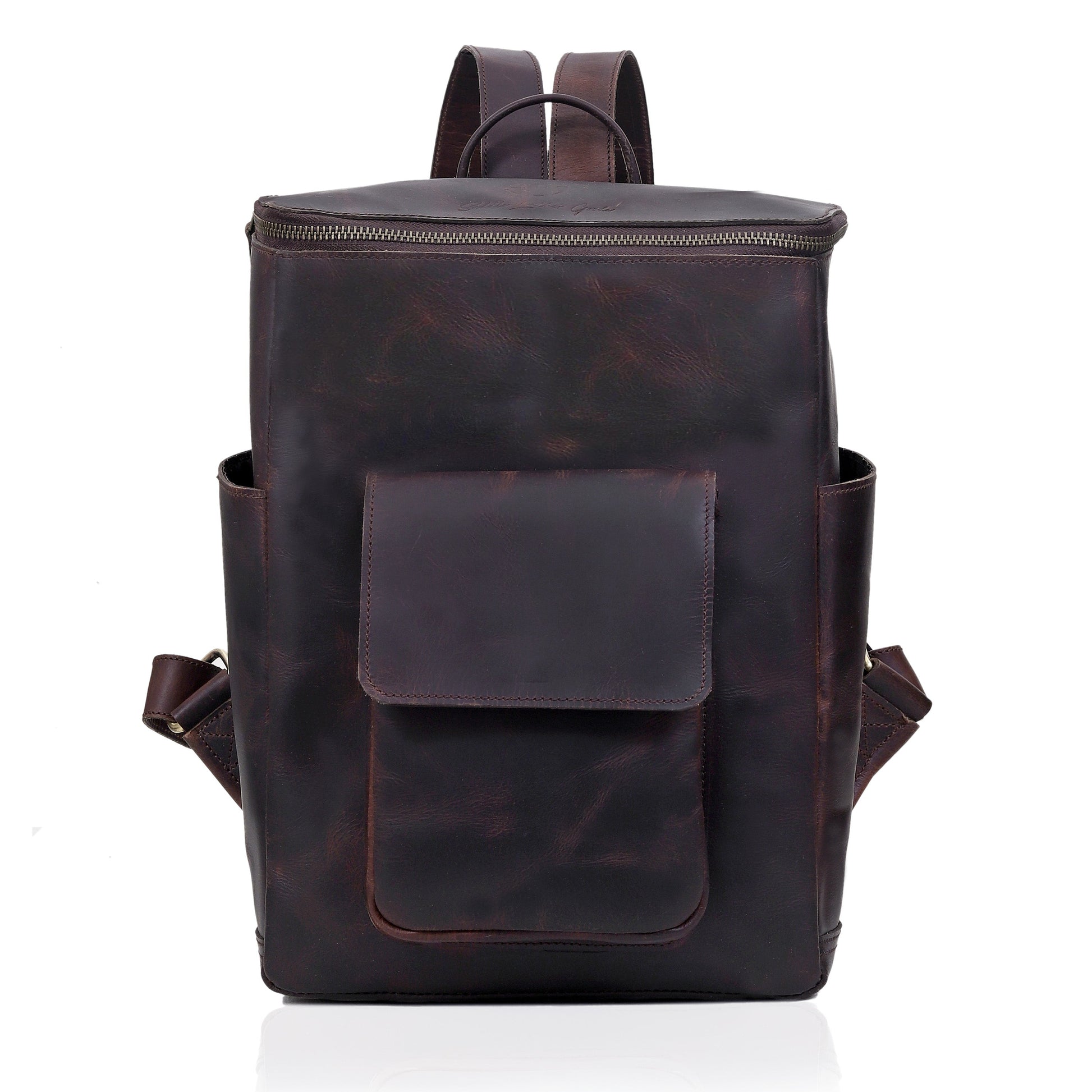 Elevate your everyday carry with this timeless leather daypack, designed for both style and functionality. Crafted from premium full-grain buffalo leather, this backpack offers a rugged yet refined look that only improves with age. The spacious main compartment easily fits your daily essentials — from a laptop and notebooks to a change of clothes or travel gear — while multiple interior and exterior pockets keep your items organized and within reach.