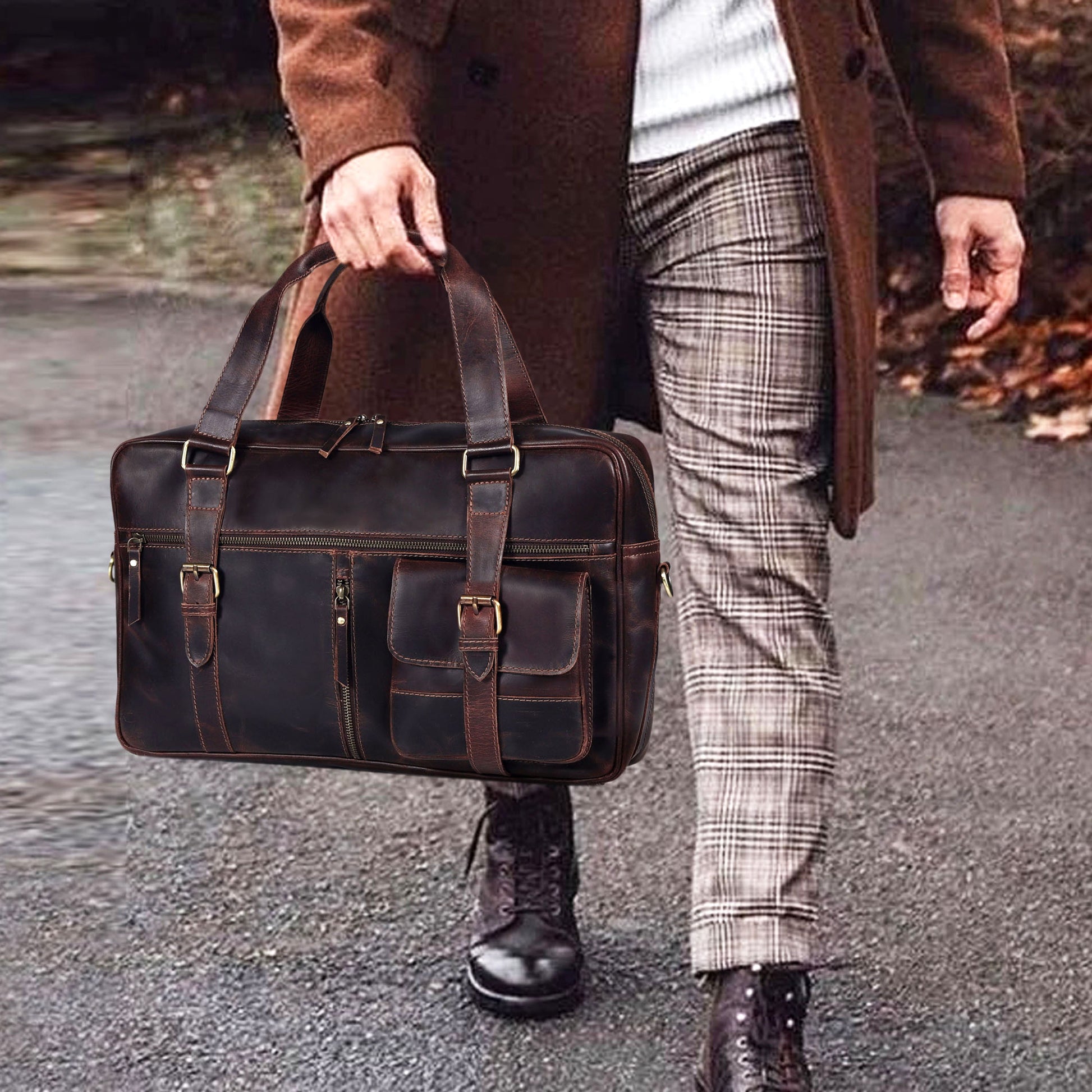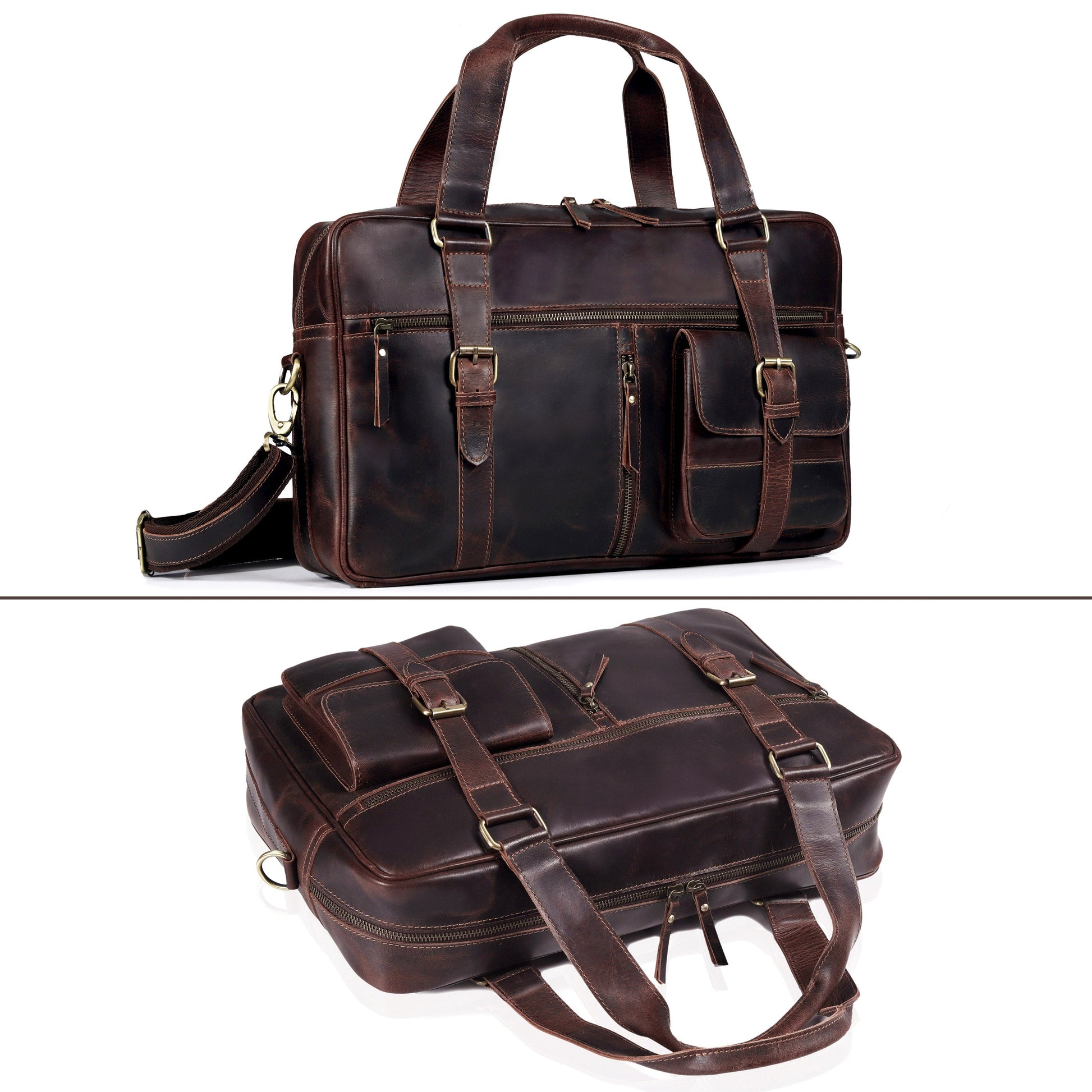 A true embodiment of timeless craftsmanship and executive elegance, The Legacy Leather Briefcase 17" is built for those who lead with purpose. Crafted from premium full-grain buffalo leather, this briefcase offers a commanding presence with its bold, structured silhouette and rich, natural texture that only deepens with age.