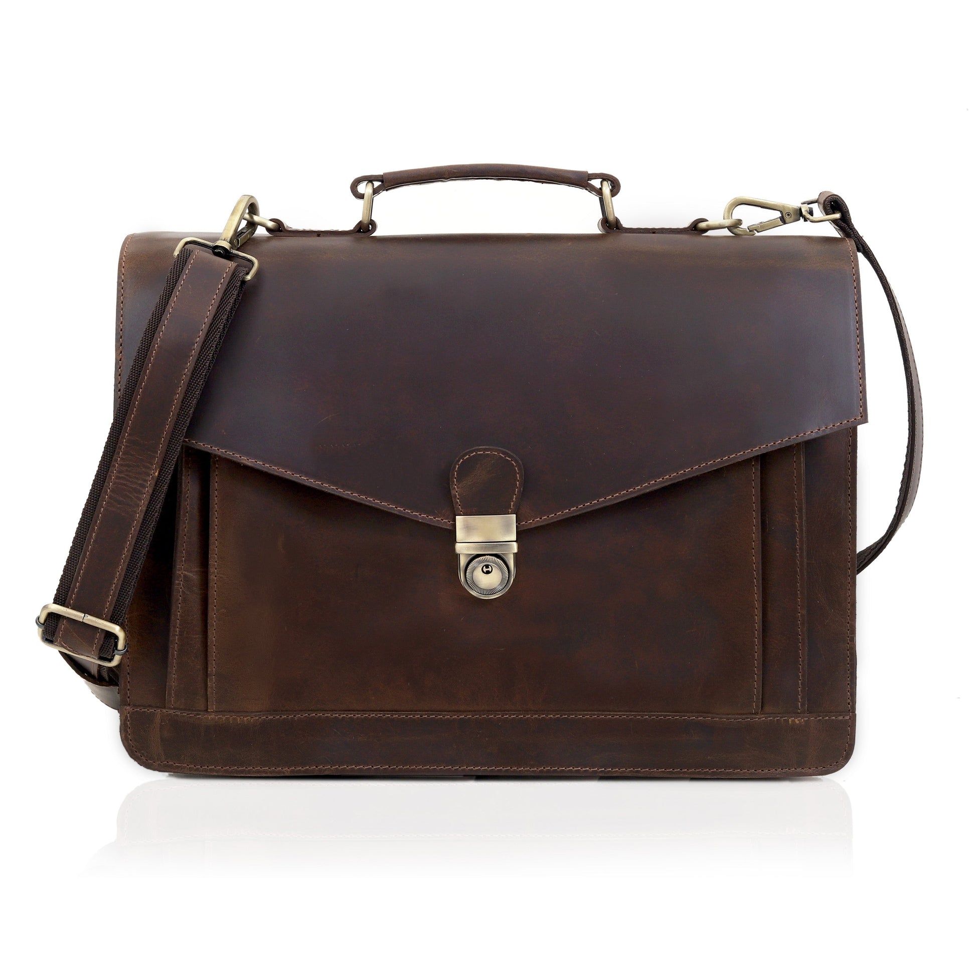 Designed for Business Excellence: The Officer Leather Laptop Bag has a large main compartment that fits laptops up to 15.5 inches. This includes models like MacBook Pro, Dell XPS, Surface Laptop, and Lenovo ThinkPad. The padded laptop section offers strong protection for your important devices.