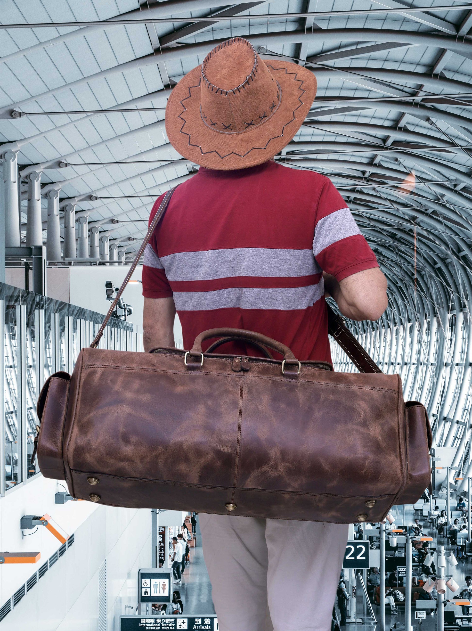 The Overnight Leather Duffle Bag is designed for those who seek a perfect balance of elegance and functionality. Whether you're heading to the gym, packing for a quick overnight trip, or carrying your sports gear, this bag provides ample space and a sophisticated look. Made from premium full-grain leather, it is built to withstand daily use while developing a rich patina over time. The Overnight Leather Duffle Bag is more than just a bag—it’s a reliable and stylish companion for those always on the move. Whether for travel, fitness, or daily use, it ensures you stay organized while exuding effortless sophistication.